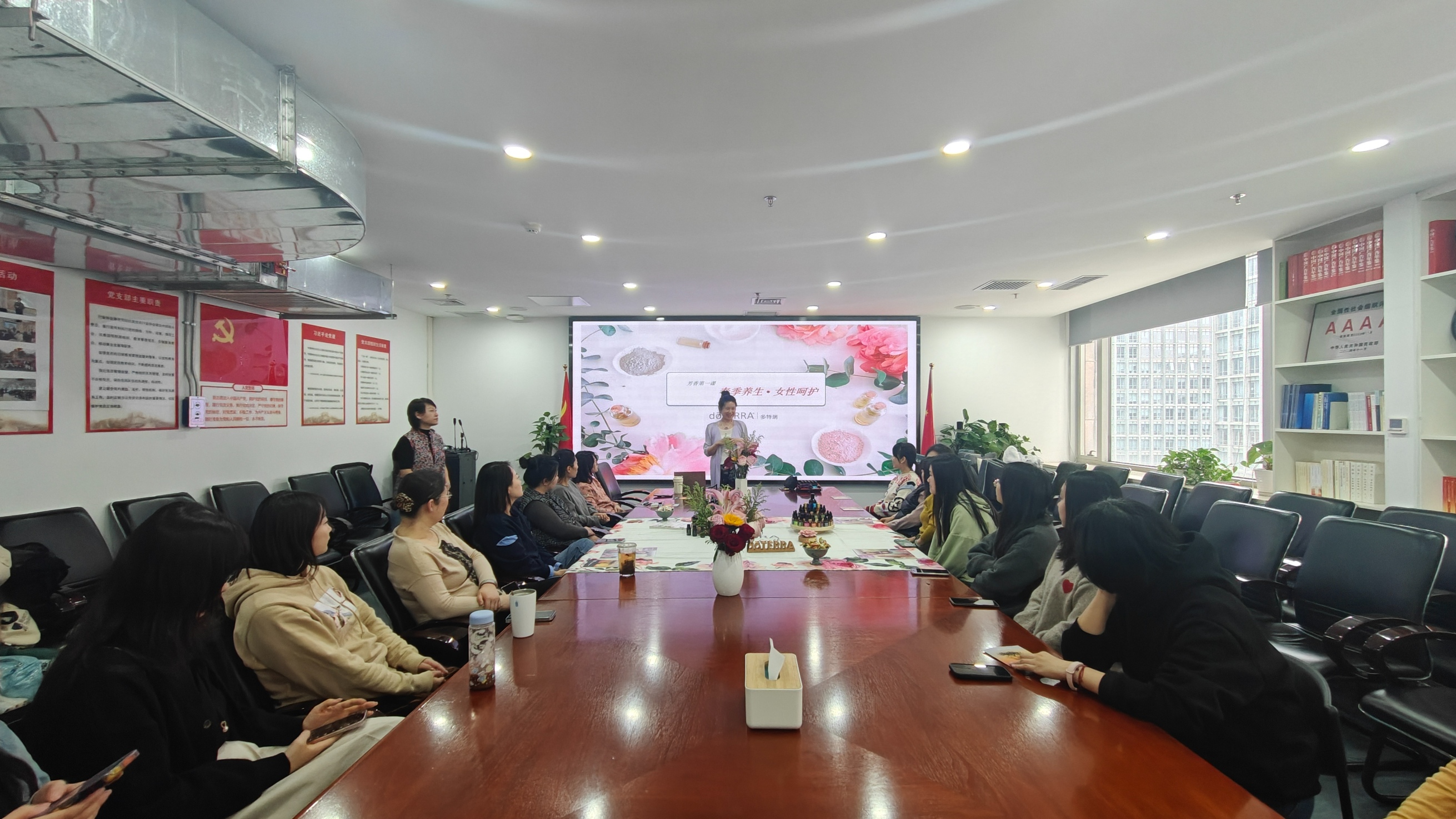 接下来,由工会特邀专业芳香讲师为所有到场女职工带来主题为 “绽放女性魅力,畅享芬芳时光” 的芳香文化讲座,深入浅出地讲解芳香文化的历史渊源、发展历程以及在现代生活中的应用。帮助了解到不同种类的芳香植物及其独特的功效,开启对大自然芳香世界的全新认知。在舒缓的音乐和迷人的香气中,芳香老师带领大家进行一场放松身心的芳香冥想。通过呼吸的配合,让身心得到深度的放松与滋养,恢复活力与平衡。最后,在专业调香师的指导下,女神们亲自制作了一瓶属于自己的芳香精油。通过这次活动,让大家认识了芳香的魅力和大自然植物的力量,用自然疗法改善自己和家人朋友们,获得身心灵的健康和快乐。