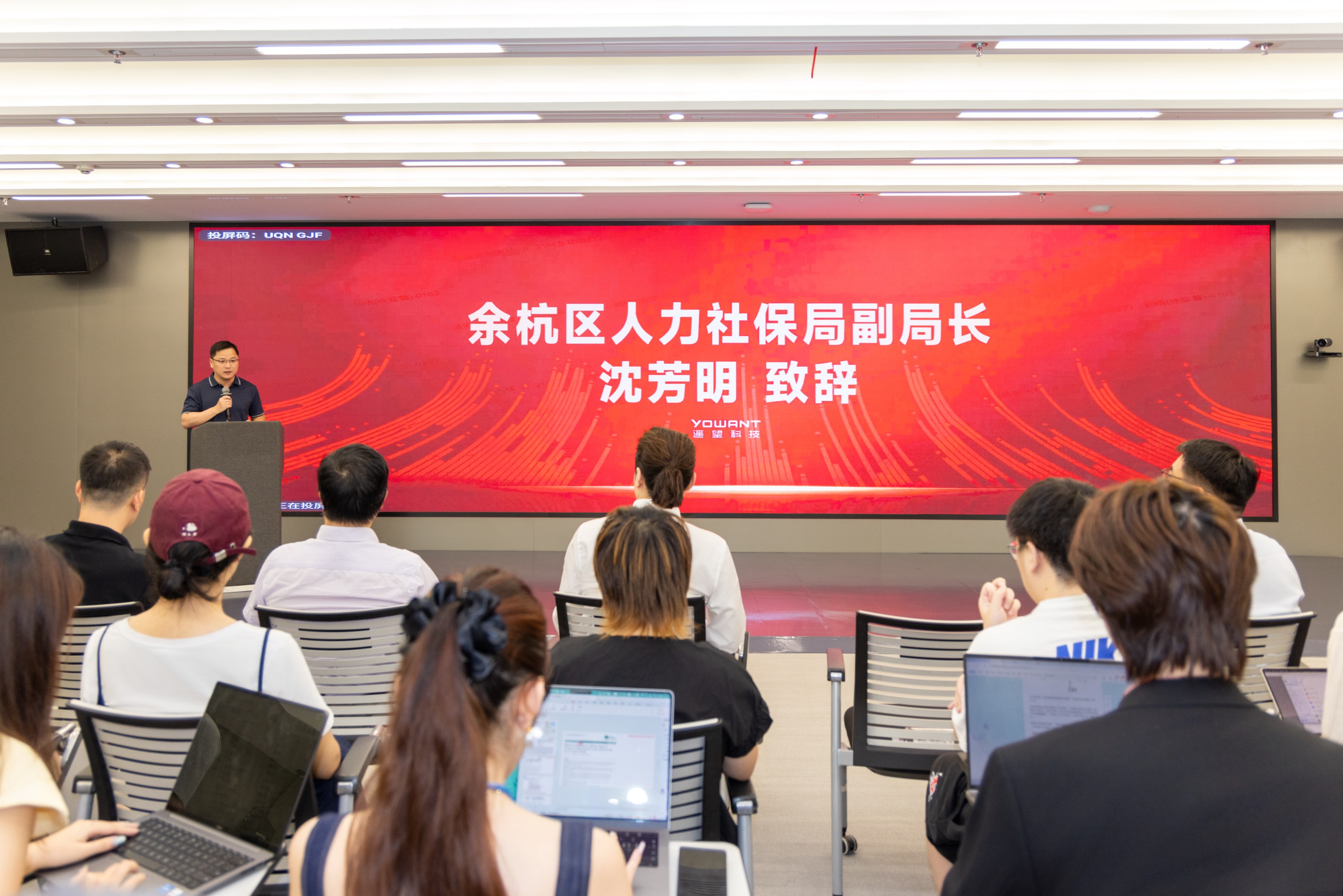 余杭区人力社保局党委委员、副局长沈芳明表示,余杭区坚持人才引领、创新驱动战略,以人才黄金 20 条等政策为牵引,构建了覆盖人才引进、培养、服务全链条的生态体系。此次获批省级博士后工作站,标志着遥望科技在科研平台建设和高层次人才培养上迈出关键一步,为博士后提供产学融合一线平台,助力企业抢占领域制高点。期待工作站聚焦产业战略需求,深化校地协同,依托浙江大学、浙江工商大学学科资源,推动科研成果就地转化。同时,企业要对博士后工作站规范管理,提质增效,建立健全管理制度,确保人才培养和科研攻关规范化、科学化。探索教科人一体化新模式,打破教育、科研与产业界壁垒,形成人才链、创新链、产业链闭环发展。